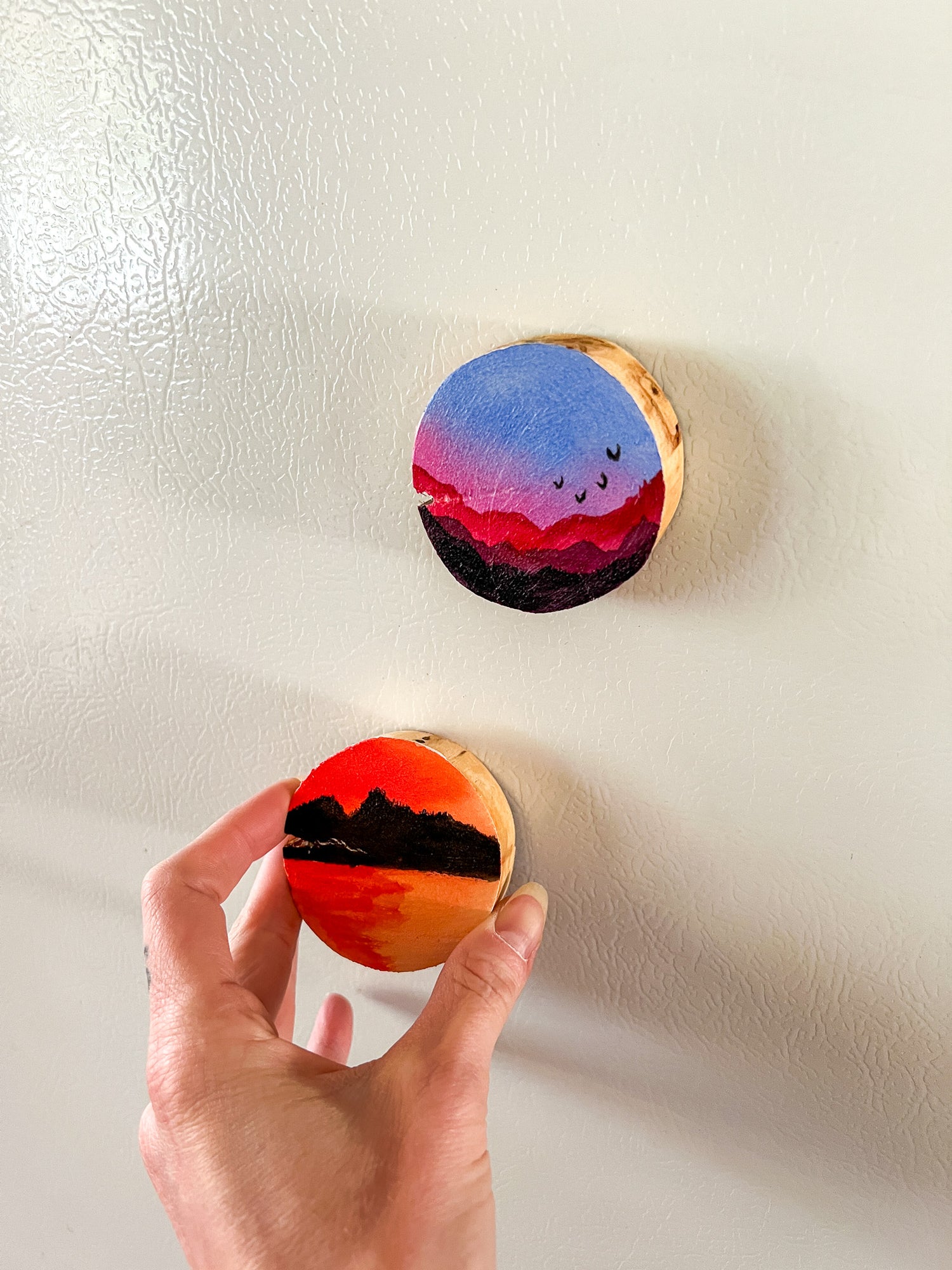 Each magnet round is created with thought of the environment I imagine my audience to surround themselves with. My one-of-a-kind magnets are perfect for brightening up your camper or office space.